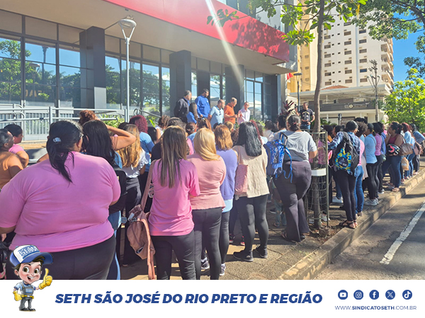 Em conjunto com as trabalhadoras da empresa Produserv Serviços Ltda, o Sindicato SETH deu início, na manhã desta sexta-feira (23/01), à paralisação da categoria em frente à Prefeitura de São José do Rio Preto, em protesto contra o descumprimento de obrigações trabalhistas e convencionais pela terceirizada, que possui contrato de prestação de serviços com o município.