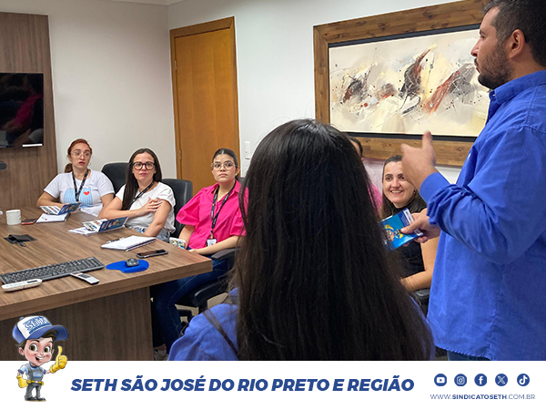 Na oportunidade, os assessores do SETH também distribuíram material informativo e falaram sobre os benefícios exclusivos para associados(as) e dependentes. Entre eles, destacam-se o Clube de Campo SETH, o mais completo e bem estruturado da região, cinco colônias de férias no litoral e no interior, atendimento odontológico, salão de beleza, assistência jurídica, farmácia com medicamentos a preço de custo, além de parcerias com psicóloga, óticas e o plano de saúde da Bensaúde.
