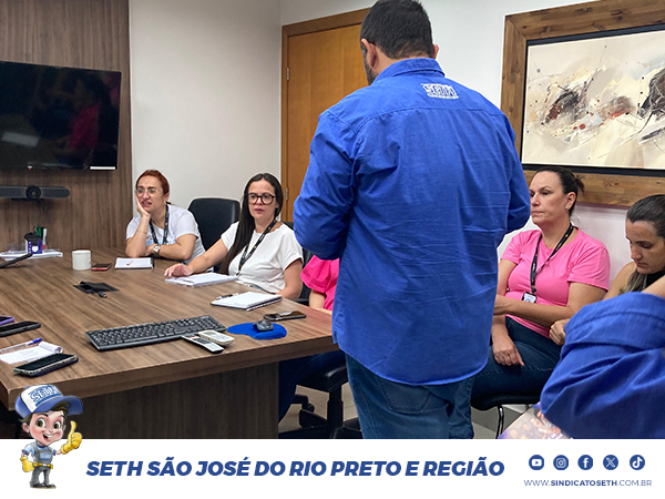 O Sindicato SETH realizou, na última sexta-feira (06/02), uma assembleia com as trabalhadoras da empresa de asseio e conservação JPM Serviços Comerciais, em São José do Rio Preto/SP, para discutir e votar a proposta de Acordo Coletivo de Trabalho apresentada pela empresa.