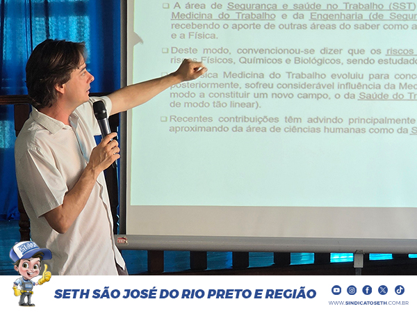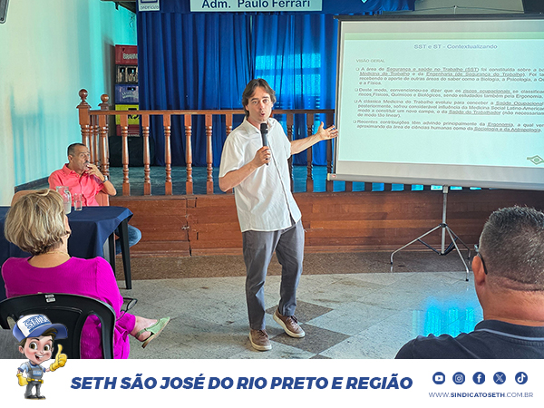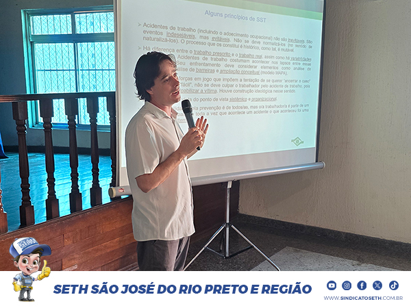 Representando o SETH, Marlon Silva destacou a importância da participação do sindicato no evento. “É fundamental estarmos informados sobre as atualizações das normas de segurança e saúde no trabalho para que possamos atuar na defesa de ambientes mais seguros e saudáveis para os trabalhadores que representamos”, afirmou.