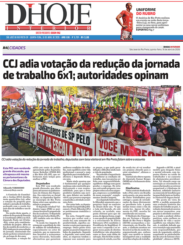 O Sindicato dos Empregados em Turismo e Hospitalidade de Rio Preto e Região (SETH) acompanhou a movimentação em Brasília. Em nota, o sindicato mostrou ser favorável ao fim da escala 6x1, argumentando que, embora legal, esse modelo se tornou incompatível com a realidade atual das relações de trabalho.