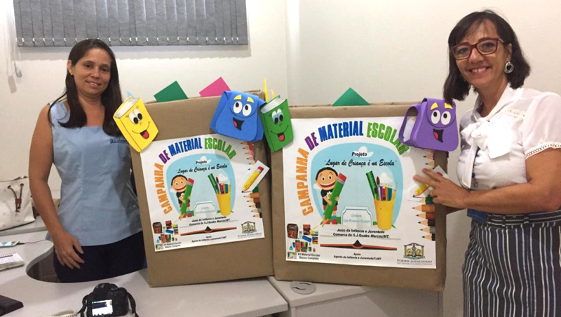 Caixas com o slogan “Lugar de criança é na escola” estão disponibilizas por duas semanas, desta segunda (28) a 11 de fevereiro, em três postos de coleta: no Fórum da Comarca, Supermercado Lima e Atacado Marchi. No dia 12, todo material arrecadado será recolhido para montagem de kits escolares.