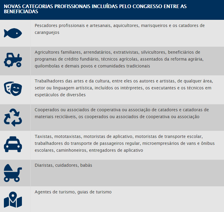 A versão do Senado havia sido aprovada no início de abril, como complemento à criação do auxílio emergencial, contendo as emendas dos senadores ao projeto original. Após as intervenções da Câmara, o texto final contém uma lista maior de categorias profissionais às quais será concedido o benefício; garante a possibilidade de recebimento sem o CPF regularizado; autoriza que dois membros de uma mesma família recebam o auxílio; proíbe a retenção do valor pelos bancos para o pagamento de dívidas; e retoma a expansão da base do Benefício de Prestação Continuada (BPC).